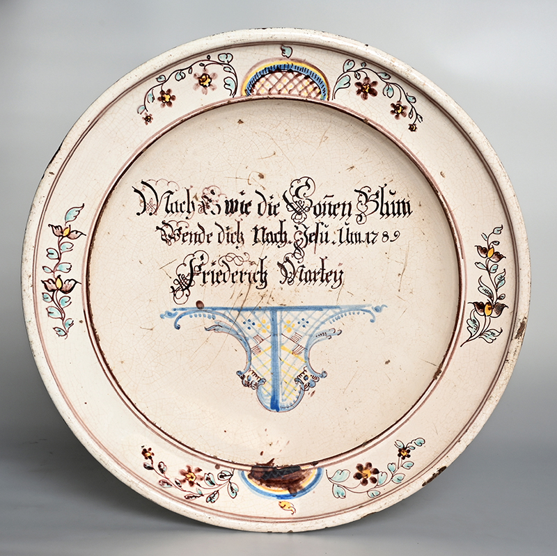 Darunter befinden sich Fayencen ganz unterschiedlicher Herkunft, z.B. aus Winterthur, Zollikon, Hanau, Nürnberg, Ansbach, Niderviller, Ostfrankreich, Strassburg, Matzendorf und Kilchberg-Schooren sowie eine Fälschung aus der Manufaktur Fleischmann aus Nürnberg.