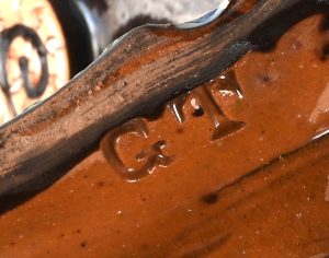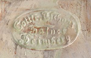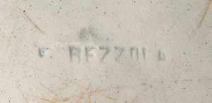 Im Gegensatz zu den „normalen“ Keramikmalerinnen oder Keramikmalern durfte Frank seine Keramiken zusätzlich zur Firmenmarke mit seinen Initialen versehen.