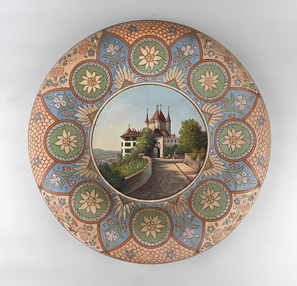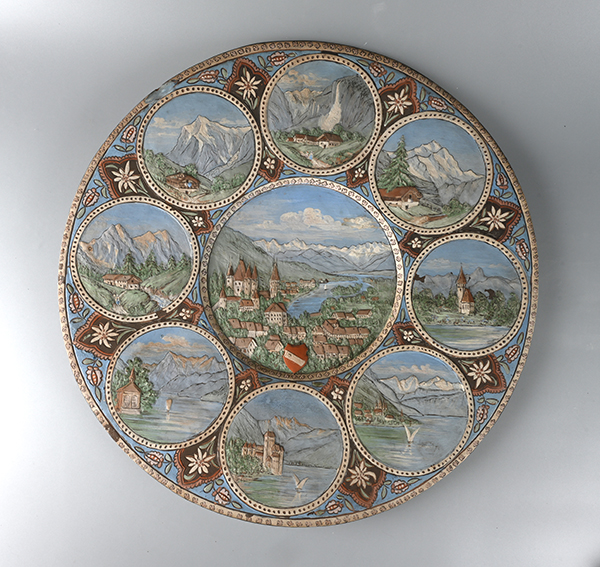 Bei den ab 1883 von Johann Heinrich Schoch-Läderach zusammen mit Thuner Vedutenmalern für den touristischen Markt entwickelten Vedutentellern (Keramiktteller mit einer zentralen Vedute in Ölmalerei) besitzt die Stiftung Schloss Thun die weltweit grösste Sammlung mit einem hohen Anteil von den Malern und Malerinnen signierter Stücke. Vedutenteller wurden erstmals 1883 auf der Landesausstellung in Zürich gezeigt und lösten ein grosses Presseecho aus, da nicht klar war, ob sie zu Kunst oder Töpferei gezählt werden sollten. Schoch-Läderach wurde massiv angegriffen, da er als Zwischenhändler ausstellte und nicht als Produzent.