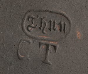 Die Werkstatt schuf auch Kopien von Wandbrunnen und anderen Gefässen nach Langnauer Vorbildern und verwendete dabei öfter eine grosse, ovale Blindmarke „Gottfr. Tschanz Hafner Heimberg“, die auch bei den grossen Figuren verwendet wurde (SST-13255).