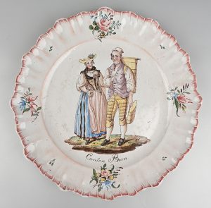Fayencemanufaktur La Villa du Rond bei Bonnétable, Frankreich, Pays de la Loire, Dép. Sarthe, um 1880-1900. Alle Stücke mit der falschen „Z-Marke“ von Kilchberg-Schooren und schweizerischen Trachtenbildern, um 1880-1900 (SST-02265 – SST-02268).