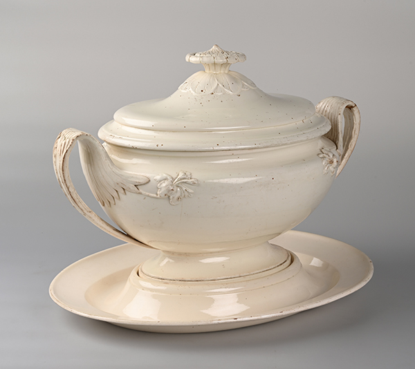 Aus England ist mit Wedgwood der Marktführer aus Stoke-on-Trent mit einer sehr schönen Terrine vertreten, die man sich gut in einem gehobenen bürgerlichen Haushalt Thuns der zeit um 1800 vorstellen könnte.