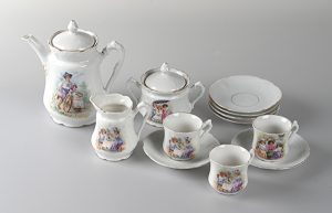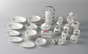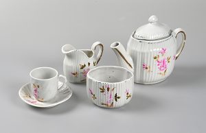 Porzellanobjekte sind in der Sammlung mit 102 Datensätzen vertreten. Die Zusammensetzung – Apothekenporzellan, Puppengeschirr, Hotelporzellan, lokal in Haushaltswarengeschäften Aufglasur-dekoriertes Geschirr – zeigt keine wirklichen Besonderheiten.