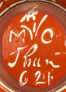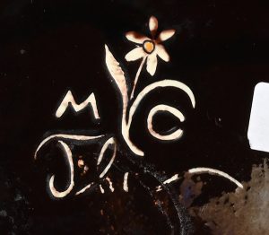 Im Gegensatz zu den „normalen“ Keramikmalerinnen oder Keramikmalern durfte Frank seine Keramiken zusätzlich zur Firmenmarke mit seinen Initialen versehen.
