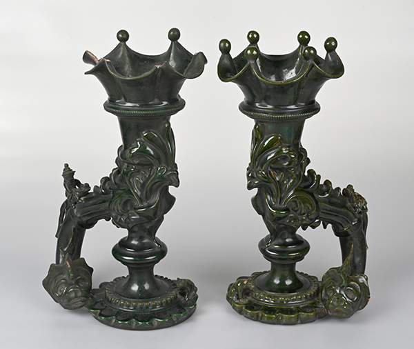 Vasenpaar mit Drachenreiter, signiert „GT“ und „Thun“ im Oval (SST-12999), aus Familienbesitz Tschanz.