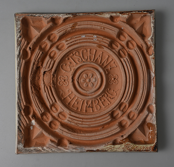 Ausserdem produzierte er gepresste Wandfliesen und fertigte für sich selbst einen Kachelofen (SST-13011, 13019). Aus Familienbesitz Tschanz.
