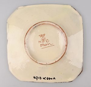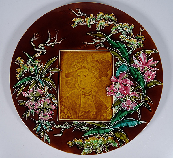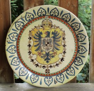 Wohl französische „Majolika“-Platte mit dem Aufkleber von Schoch-Läderach, Fotos Internet.