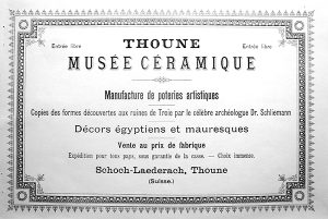 Bereits im Januar 1898 kaufte Ludwig Hahn (Heimatort Elgg ZH), das «Musée céramique», dessen Zweck mit «Fabrikation und Handlung en gros und en detail in Kunsttöpferei» angegeben wurde (SHAB 16, No. 20, 19. Jan. 1898; Thuner Wochenblatt 61, No. 9, 29. Januar 1898).