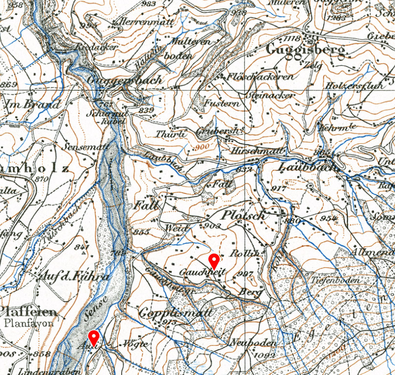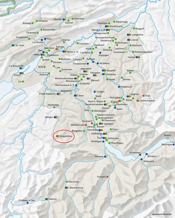 Der südwestliche Teil des Kantons Bern weist mit dem Schwarzenburger Land nur sehr wenige Töpfereien auf, vermutlich da es an geeignetem Rohmaterial fehlt. Um so erstaunlicher ist der Nachweis von zwei Töpfereistandorten in der Nähe von Guggisberg.
